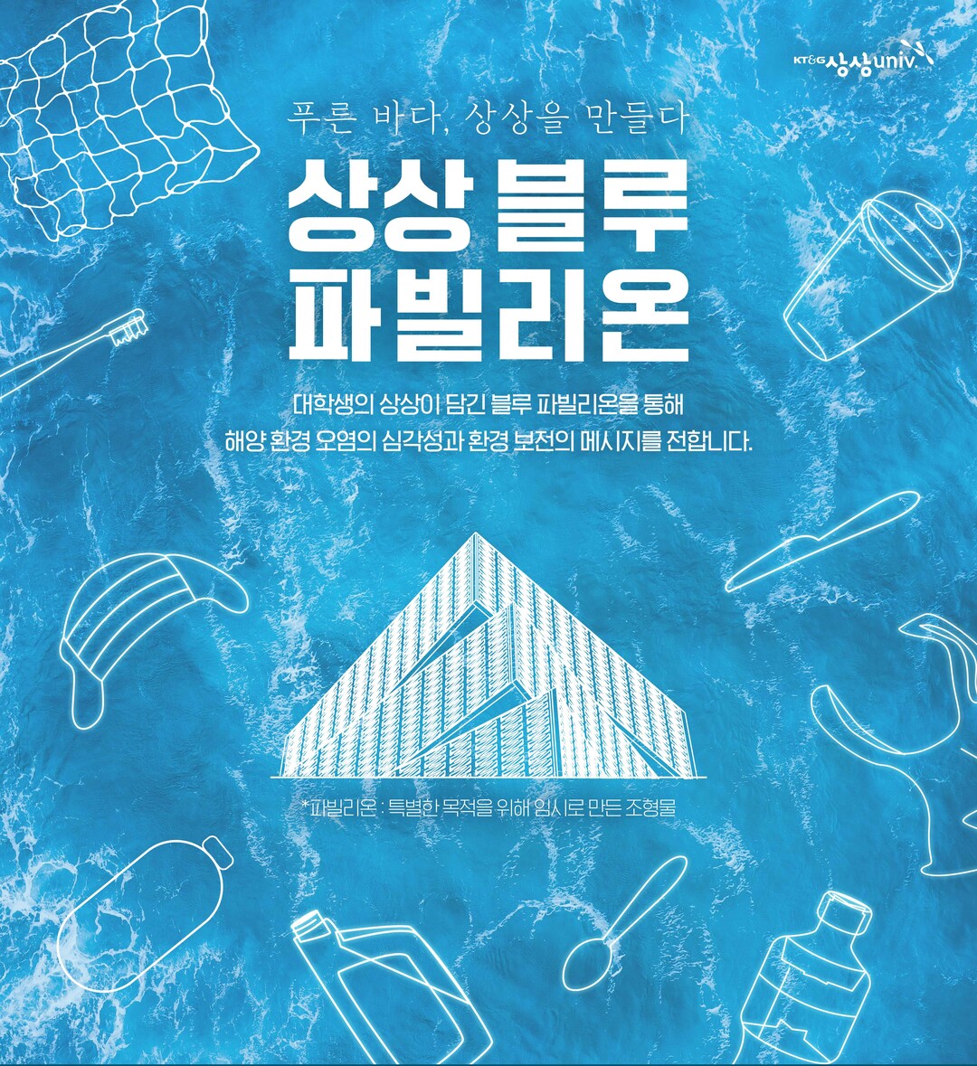 ‘상상 블루 파빌리온’은 KT&G 상상유니브가 올해 처음 선보이는 프로그램으로, 대학생의 창의적인 아이디어에서 비롯된 조형물 제작과 전시를 통해 사회적 가치 창출에 기여한다는 것이 목표다.