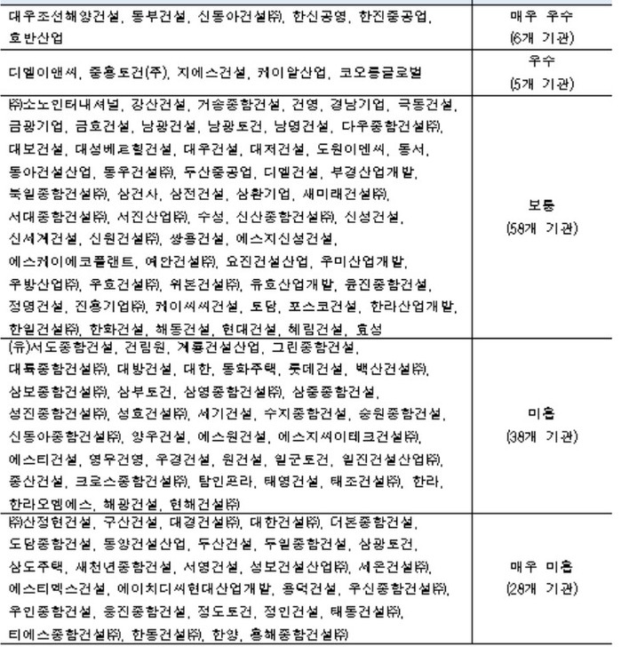 지난 2020년 10월부터 2021년 9월 30일 기간 내 건설사고 사망자 발생시 2명 당 1등급씩 하향 조정했다.