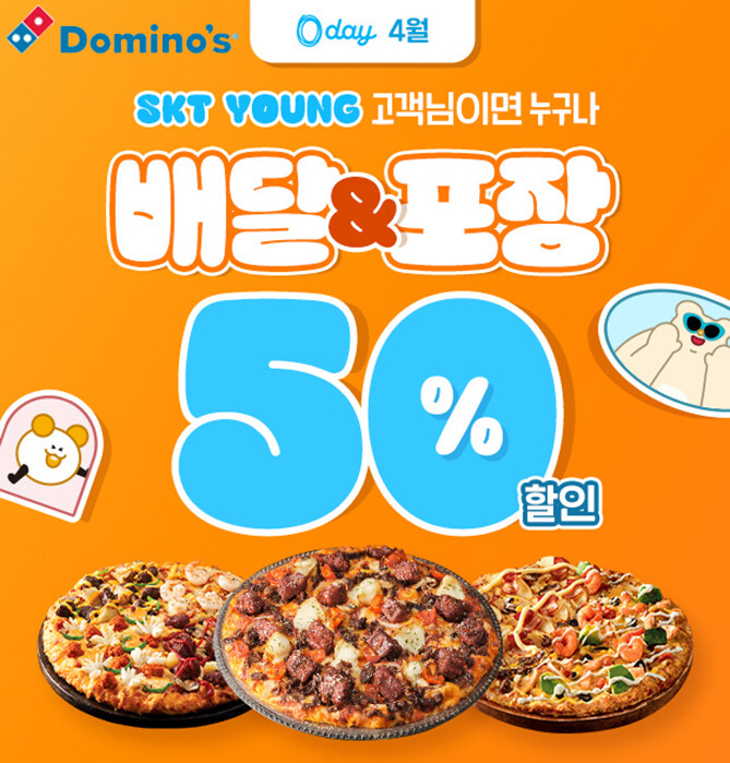 도미노피자 관계자는 “SKT의 13~34세 고객이 50% 할인 혜택을 받을 수 있는 프로모션을 진행하는 만큼 이번 혜택을 놓치지 마시길 바란다”라고 말했다.