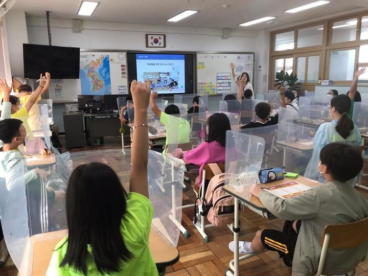 | ▲ '찾아가는 게임과몰입 해소 프로그램' 중 창의게임문화교실 활동을 진행하고 있다. [사진=부산정보산업진흥원] |