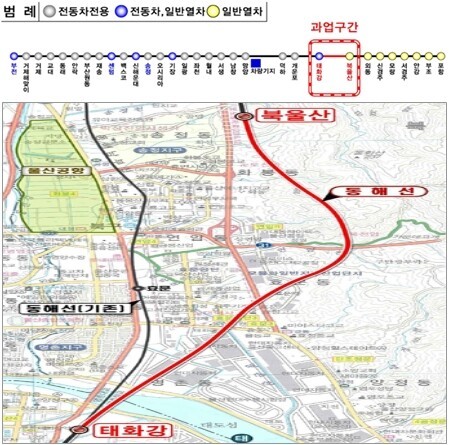 | ▲ 태화강-북울산 광역철도 사업 구간. [자료=국토부] |