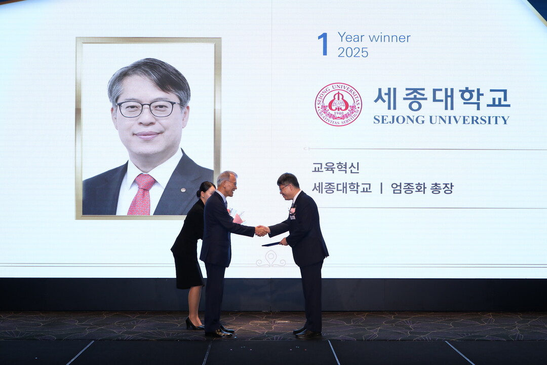 엄종화 총장은 “이번 상은 세종대 구성원 모두가 함께 이룬 성과”라며 “변화하는 교육 환경 속에서 학생 한 사람 한 사람의 성장과 성공을 최우선에 두고, AI·데이터 기반 교육혁신을 더 속도감 있게 추진하겠다. 산업과 사회의 요구에 맞춘 실천적 인재 양성으로 국가 경쟁력 제고에 기여하겠다”고 말했다.