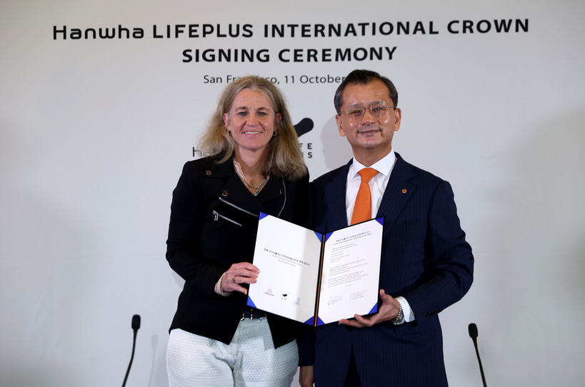 업계에 따르면, 라이프플러스는 11일(현지시간) 미국 샌프란시스코 TPC 하딩파크에서 LPGA와 ‘Hanwha LIFEPLUS 인터내셔널 크라운’ 스폰서계약을 위한 협약식을 진행했다.