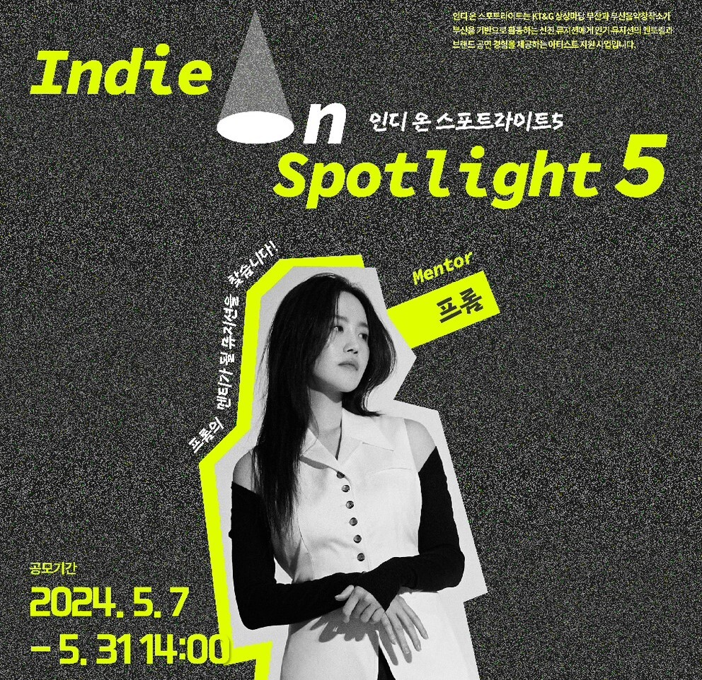 김천범 KT&G 문화공헌부 공연담당 파트장은 “신진 뮤지션들이 ‘인디 온 스포트라이트’에서 선배 뮤지션들에게 실질적인 도움을 받고, 함께 무대에 서는 기회를 통해 더욱 활발히 활동할 수 있길 바란다”라고 말했다.