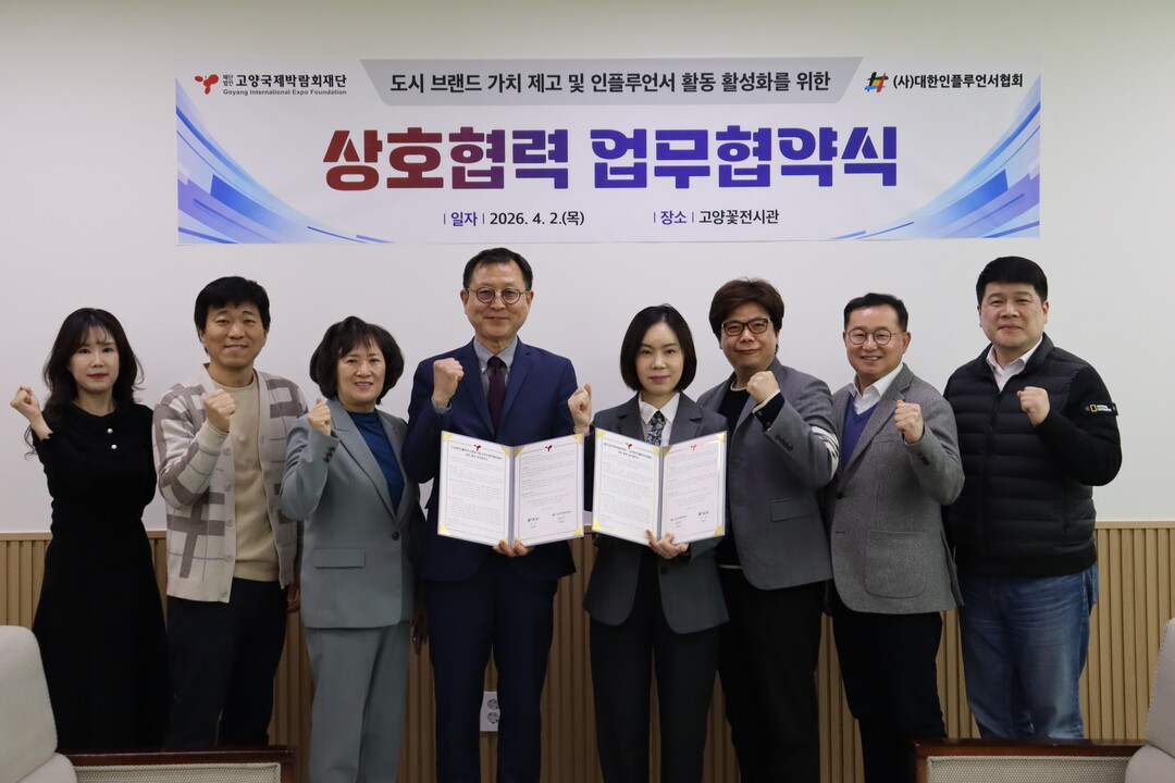 [HBN뉴스 = 정재진 기자] 대한인플루언서협회와 고양국제박람회재단은 4월 2일 고양특례시의 도시 브랜드 가치 제고와 인플루언서 공익 활동 확대를 위한 업무협약(MOU)을 체결했다.