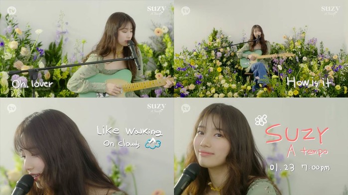 수지의 언택트 팬서트 ‘Suzy: A Tempo’는 코로나19로 인해 팬들과의 직접적인 소통이 어려운 시기, 10년간 받은 팬들의 사랑에 보답하기 위해 특별히 준비한 자리다. ‘A Tempo’는 ‘본디 빠르기로’란 뜻으로 악곡 도중에 일시적으로 변화했던 속도를 본래의 템포로 되돌리는 것을 의미해 데뷔 후 지금껏 바쁘게 달려온 시간들을 되돌아보고 앞으로 그 어떤 속도의 변화에도 흔들리지 않고 지금의 수지로 함께하겠다는 의미를 담고 있다.