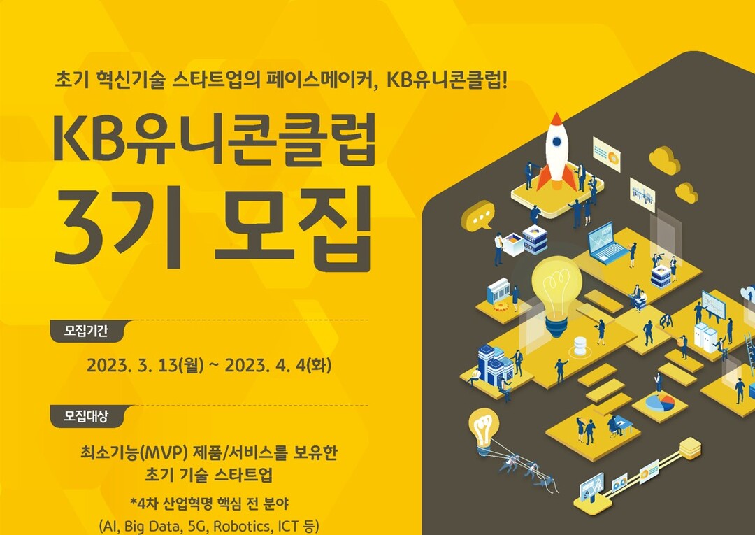 | KB국민은행이 혁신기술을 보유한 스타트업 지원을 통한 사회적 가치 창출을 위해 ‘KB유니콘 클럽’ 3기를 모집한다. [사진=KB국민은행] |