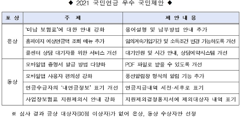 | ▲ 2021년 국민연금 우수 국민제안 현황. |