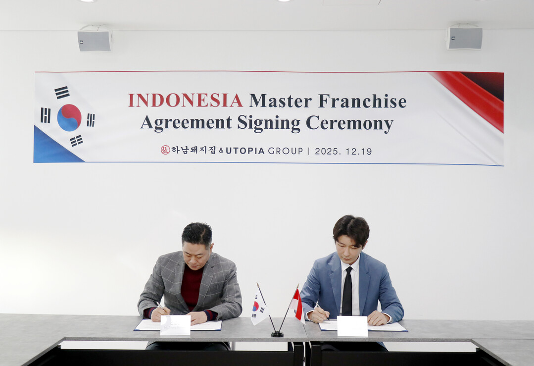 [HBN뉴스=정동환 기자] 프리미엄 삼겹살 전문 브랜드 하남돼지집(대표 장보환)이 인도네시아 외식기업 UTOPIA GROUP과 마스터프랜차이즈 계약을 체결하며 현지 시장 공략을 본격화한다. 이번 계약으로 하남돼지집은 동남아 최대 소비시장인 인도네시아에서 빠른 매장 확대에 나선다.