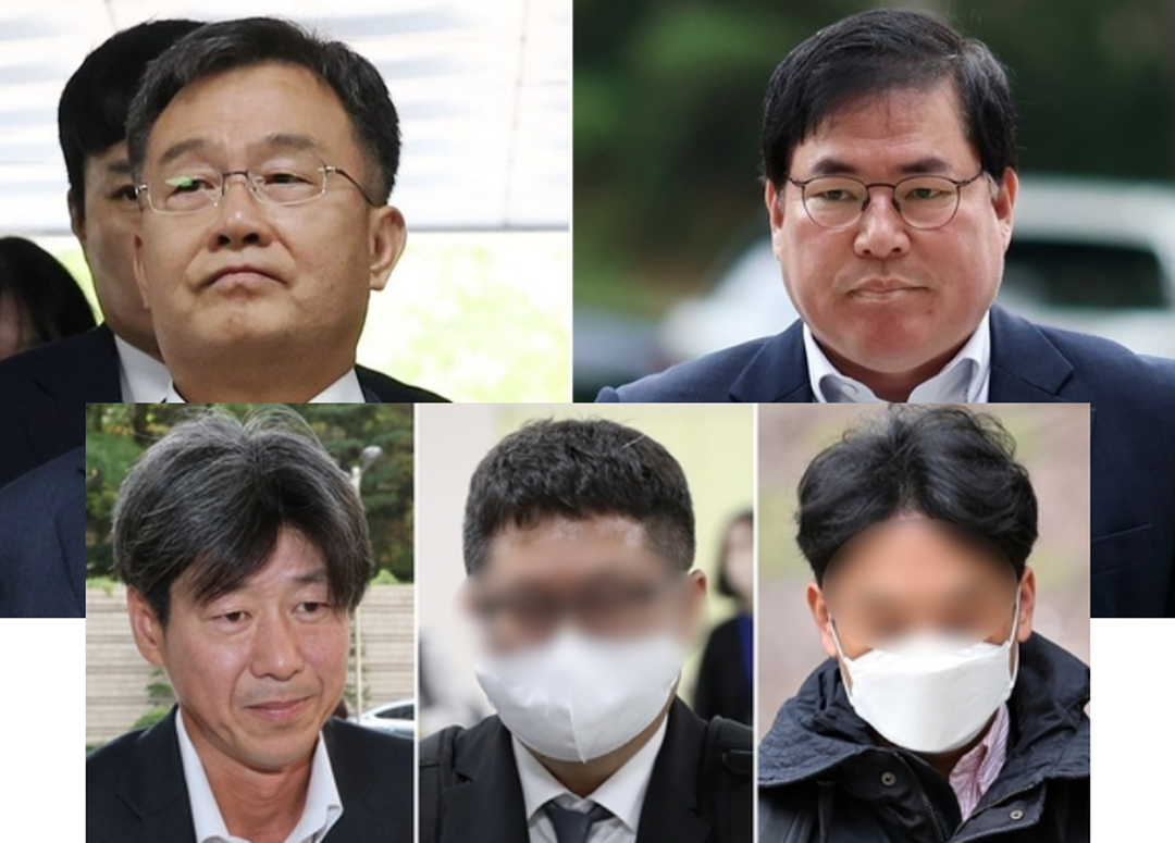 | 김만배 화천대유 대주주(위쪽 좌측), 유동규 전 본부장(위쪽 우측), 남욱 변호사(아래쪽 좌측) , 정영학 회계사(아래쪽 가운데), 정민용 변호사(아래쪽 우측). [사진=연합뉴스] |