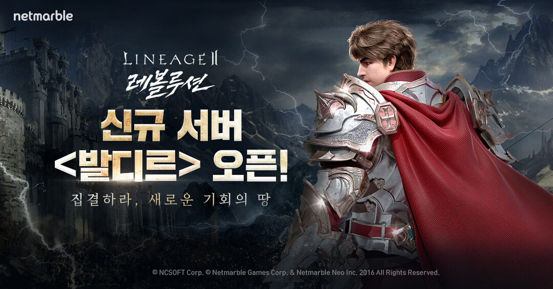 | 넷마블은 '리니지2 레볼루션'에 신규 서버 '발디르'를 오픈한다. [사진=넷마블] |