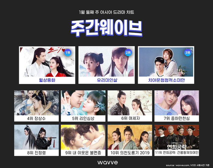 [하비엔=노이슬 기자] 2021년 시작과 동시에 주간웨이브 아시아드라마 차트 1위를 거머쥔 '월상중화'는 이번주에도 시청 시간 상승을 기록하며 입지 확보에 성공했다.