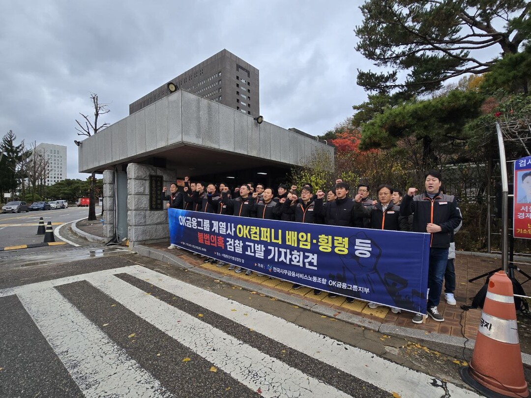 28일 전국사무금융서비스노동조합에 따르면, OK금융그룹지부는 지난 26일 서울 서초구 서울중앙지방검찰청에 최 회장과 배우자 등에 대한 고발장을 접수하고 기자회견을 열었다.