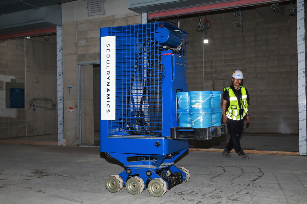 먼저 서울다이나믹스의 자율주행 지게차와 자재 이동 로봇은 현장에서 작업이 없는 야간에 자재를 자동으로 운반함으로써 주간 작업 공정 간섭을 최소화하고 작업 효율을 높인다. 자율주행 지게차는 현장에 야적된 팔레트를 인식해 자재를 지하의 아파트 각 동 별 지정된 장소로 운반한다. 이후 자재 이동 로봇은 분배된 자재를 싣고 엘리베이터를 호출하고 탑승해 아파트 호실 내부까지 운반·하역한다.