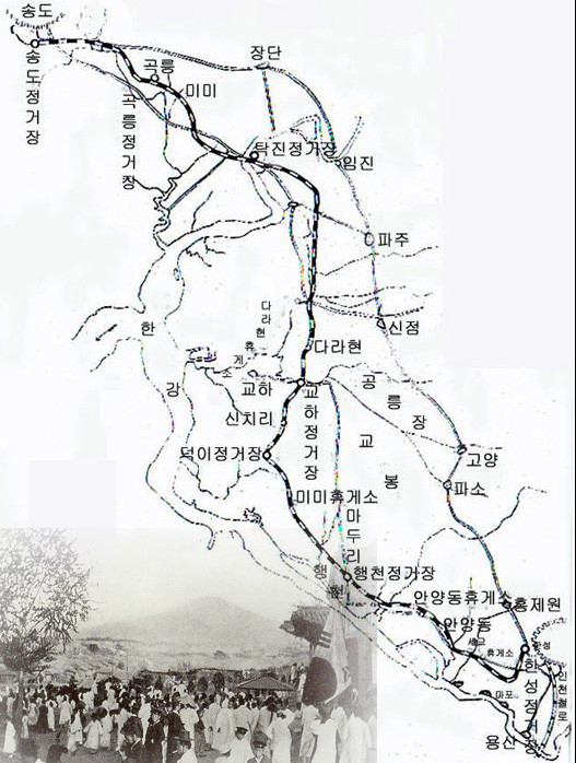 | ▲한성~송도 간 노선도 서북철도국 기공식 |