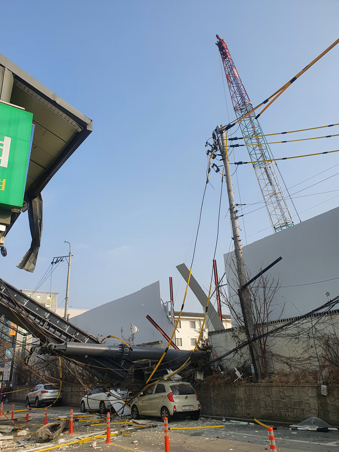 또 길가에 주차된 차량과 지나가던 차량 등 5대가 파손됐으며, 전봇대가 쓰러져 이 일대 주택 40가구에 정전이 발생했다.