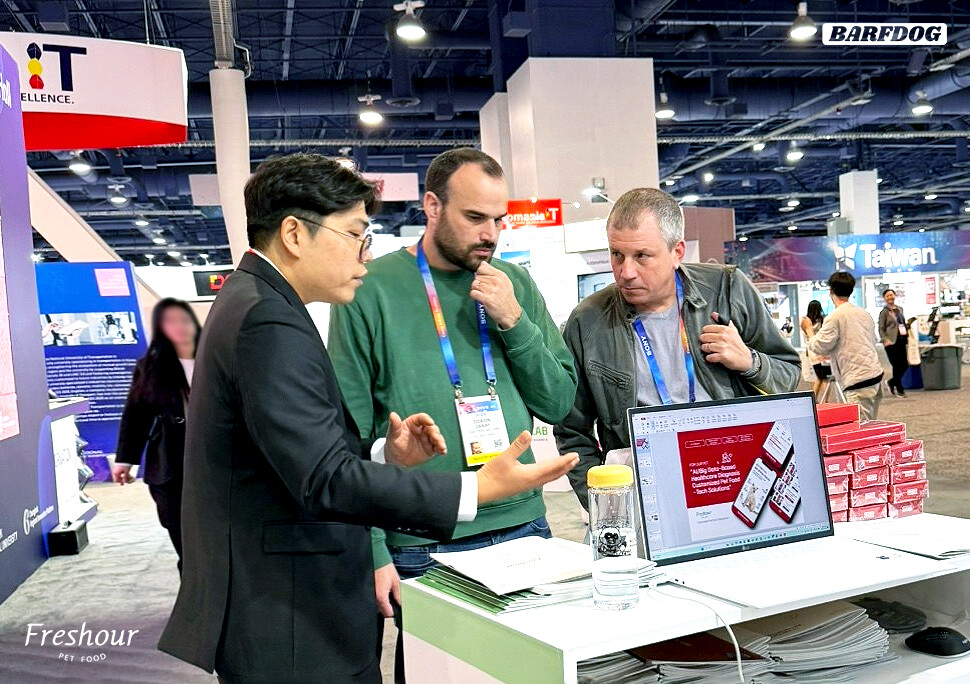 | 프레쉬아워가 미국 라스베이거스에서 열린 세계 최대 IT 전시회 ‘CES 2025’에 참가해 맞춤 펫푸드 식이 솔루션 ‘바프독’을 홍보했다. [사진=프레쉬아워] |