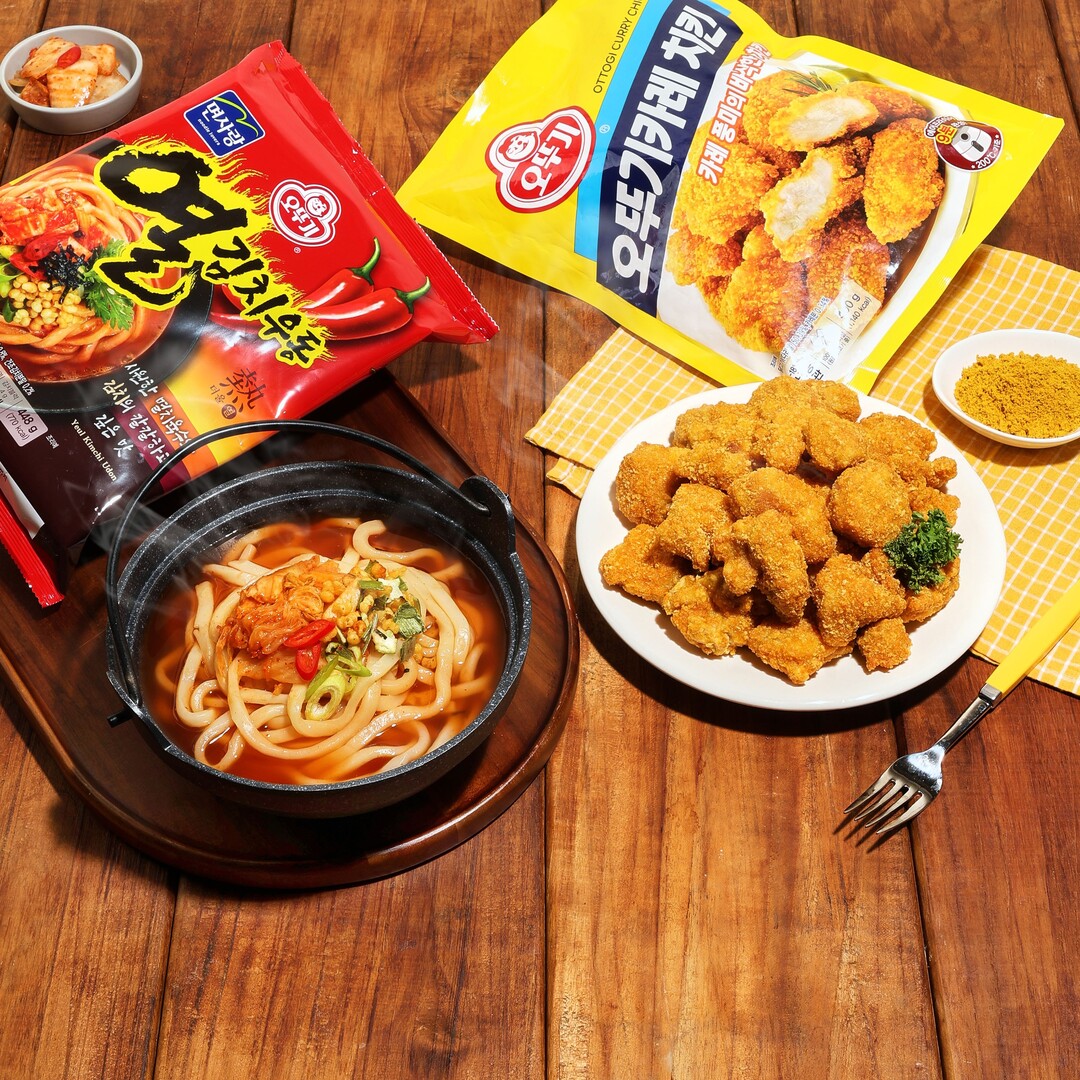| 오뚜기에서 선보인 ‘카레치킨’과 ‘열김치우동’. [사진=오뚜기] |