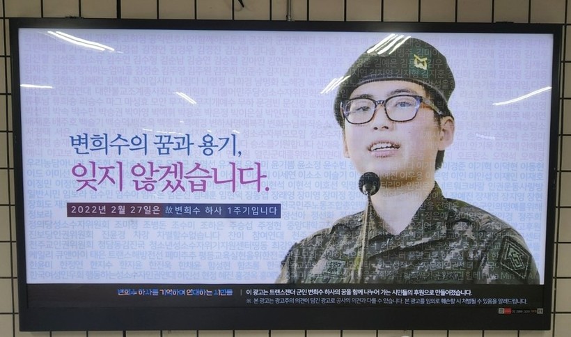 앞서 지난해 8월 군인권센터와 시민사회단체는 고(故) 변희수 하사의 전역 처분 취소 소송 선고를 앞두고 시민 성금을 모아 변 하사를 추모하고 법원의 올바른 판결을 촉구하는 광고를 서울지하철 2호선에 게재하려 했지만, 서울교통공사가 이를 불허했다.