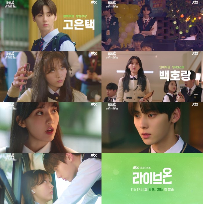 한편 ‘라이브온’은 수상한 목적을 가지고 방송부에 들어간 서연고등학교 셀럽 백호랑이 엄격한 방송부장 고은택을 만나 겪게 되는 상극 케미 로맨스 드라마로 오는 11월 17일 화요일 밤 9시 30분에 첫 방송된다.