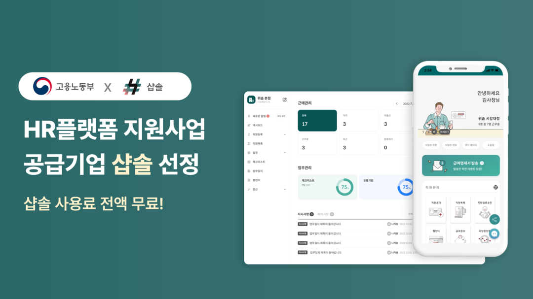 김규한 위솝 대표는 “영세사업장 맞춤형 HR 솔루션 ‘샵솔’이 고용노동부 공식 지원 플랫폼으로 선정된 것은 당사의 기술력과 서비스 안정성을 공인 받은 결과”라면서 “앞으로도 사용자 경험을 최우선으로 한 기능 고도화를 지속해 소상공인의 인사 관리 애로를 해소하고, 건강한 일터 문화를 조성하는 데 앞장서겠다”고 전했다.