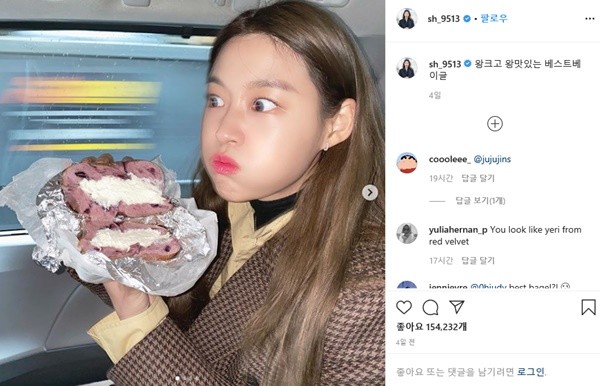 설현은 최근 자신의 인스타그램에 “왕 크고 왕 맛있는 베스트 베이글”이라는 문구와 함께 여러 장의 사진을 게재했다.