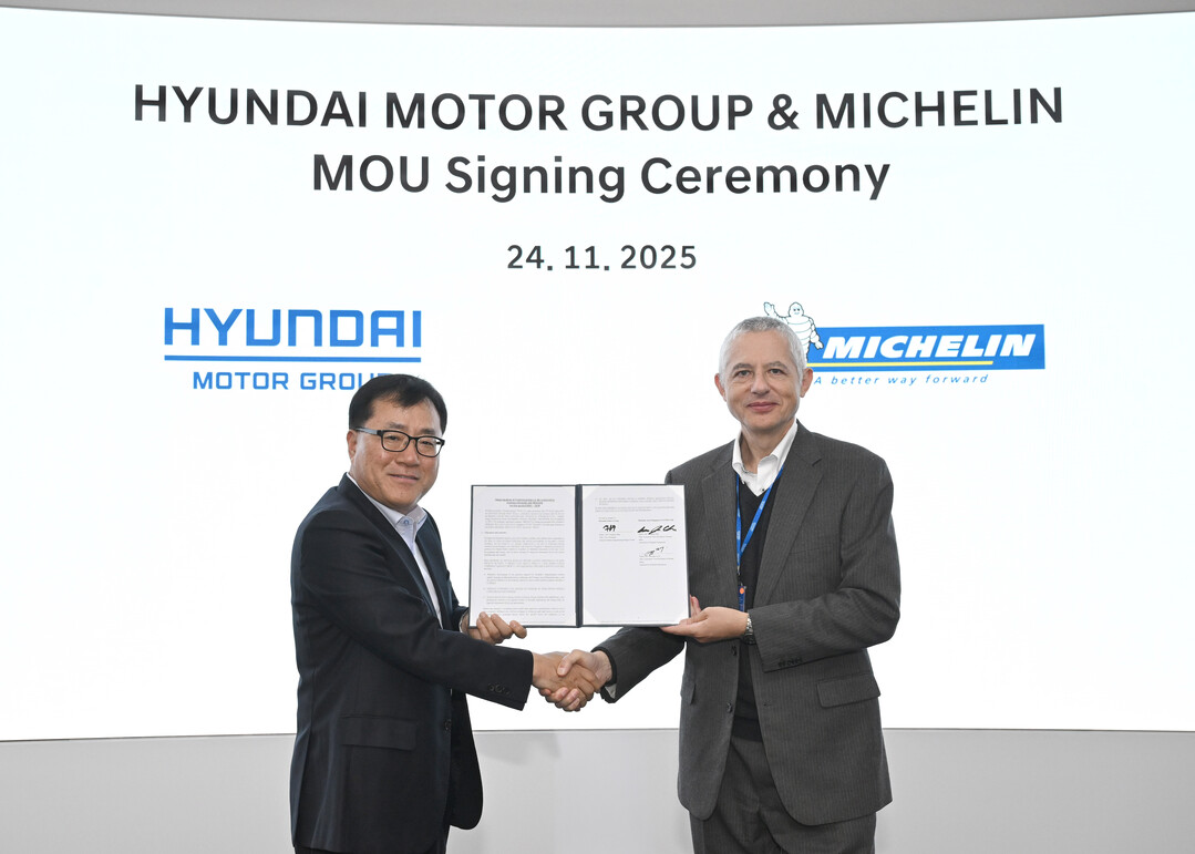 [HBN뉴스 = 김재훈 기자] 현대자동차·기아는 지난 24일 남양연구소(경기도 화성시 소재)에서 신용석 현대차·기아 제네시스설계센터장 상무, 조지레비 미쉐린 아시아퍼시픽 OE 총괄 부사장 등이 참석한 가운데 기술 공동개발 업무협약식을 하고, 차세대 모빌리티를 위한 타이어 기술 리더십 확보에 나선다고 25일 밝혔다.