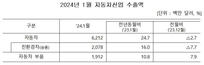 지난달 자동차 수출 규모도 24만5000대로, 지난 2015년 1월(24만8000대) 이후 9년 만에 24만대를 돌파했다.