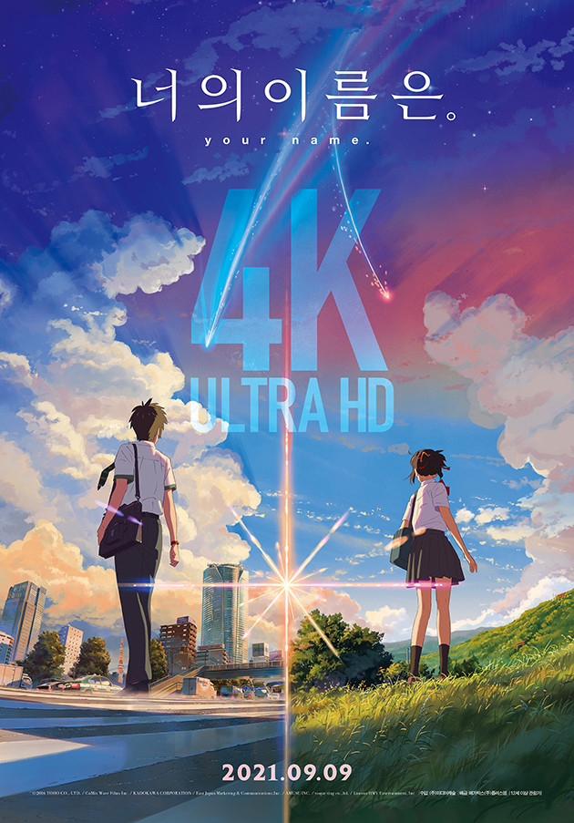 공개된 '너의 이름은.' 4K UHD 버전 포스터는 도쿄에 사는 소년 ‘타키’와 시골에 사는 소녀 ‘미츠하’의 모습과 함께 신카이 마코토 감독만의 정교한 배경 묘사가 돋보이는 하늘 위로 ‘4K ULTRA HD’ 라는 문구가 애니메이션 팬들에게 설렘을 안겨준다.