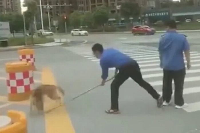 중국 잉탄 (Yingtan, 鷹潭)의 경찰관이 유기견을 공격하기 위해 금속 막대기를 사용하는 장면이 온라인상에 공유되면서 과잉대응이라는 비난을 받고 있다.