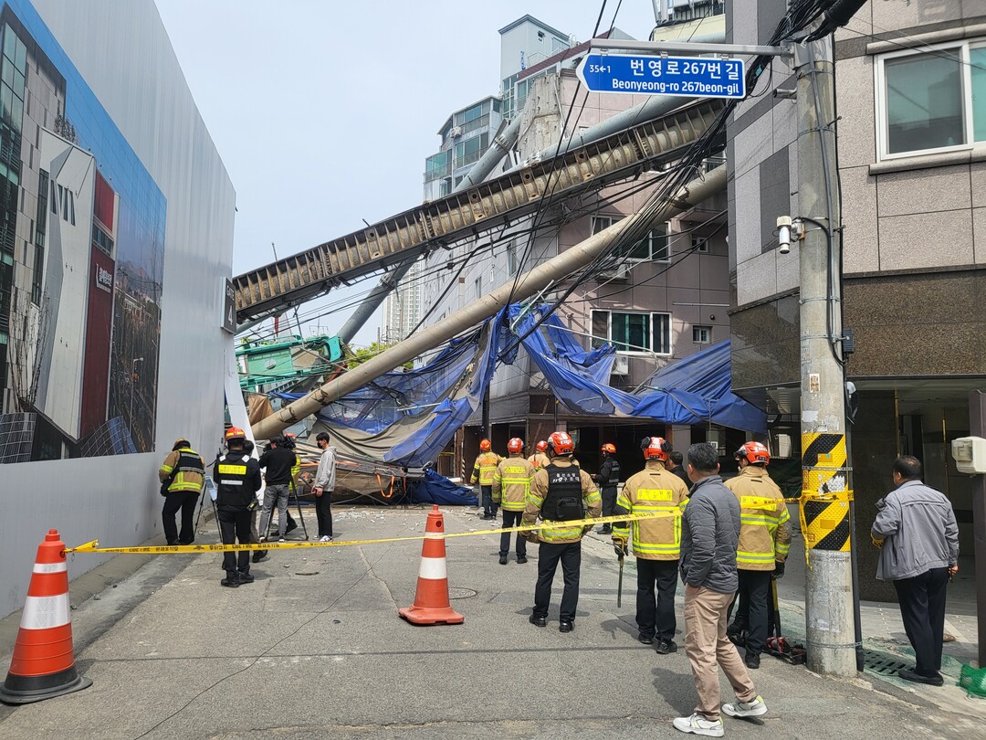 무려 37m 길이에 달하는 항타기는 인근 4층짜리 건물 등 원룸 3곳을 덮쳤고, 파손된 원룸 3곳 가운데 2곳에서 각각 3명, 2명 등 모두 5명이 부상을 입어 병원으로 이송됐다. 이 가운데 1명은 임신부로 확인됐다.