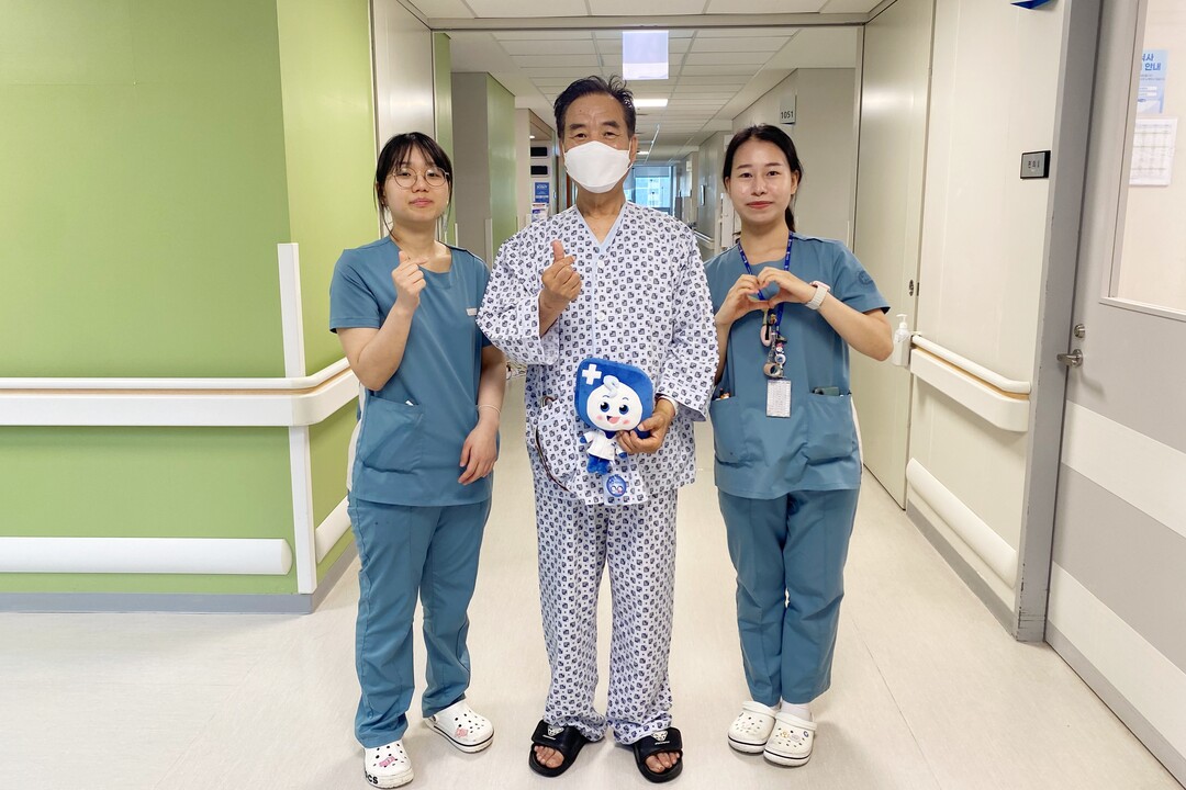 응급 시술 후 중환자실에서 회복하던 A씨는 이틀 뒤 일반병동으로 옮겨졌다. 이후 ‘심실세동으로 인한 심정지 위험이 높다’는 의료진의 판단으로 박재석 과장(심장내과)의 집도 하에 제세동기삽입술(ICD삽입)을 진행한 뒤 지난 21일 퇴원했다.