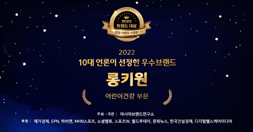 | ▲ 롱키원이 국내 10대 언론이 뽑은 ‘대한민국 브랜드 대상’에서 2022 어린이 건강 부문 우수 브랜드로 선정됐다. |