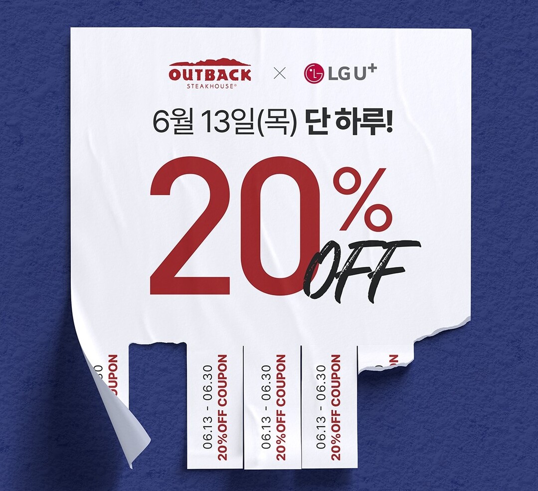 아웃백은 이번 행사를 통해 LG유플러스 멤버십 VIP 및 VVIP 회원을 대상으로 20% 할인 쿠폰을 제공한다.