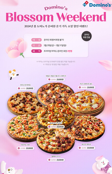 [하비엔뉴스 = 윤대헌 기자] 도미노피자는 벚꽃시즌을 맞아 29~31일 ‘블라썸 위켄드’ 프로모션을 진행한다고 28알 밝혔다.