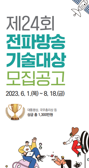 시상식은 오는 11월 말 ‘2023 전파방송산업 진흥주간’ 개막 행사에서 열리고, 대통령상 1점, 국무총리상 1점, 과학기술정보통신부장관상 5점 등 총 7점에 대해 1300만원의 상금이 수여될 예정이다.