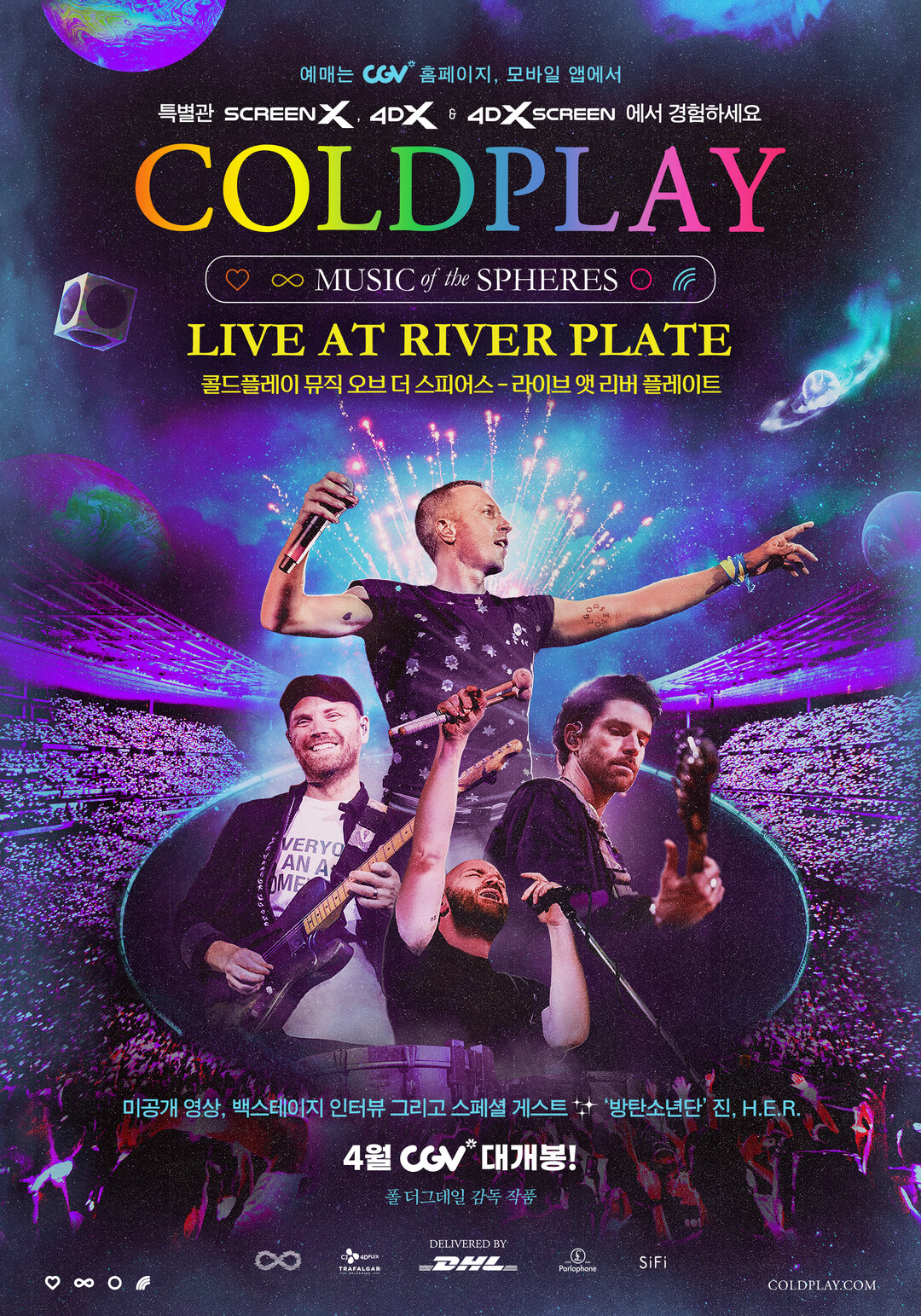| 오는 4월19일 CGV에서 <콜드플레이 뮤직 오브 더 스피어스 - 라이브 앳 리버 플레이트> 감독판을 개봉할 예정이다. [사진= CJ 4DPLEX] |
