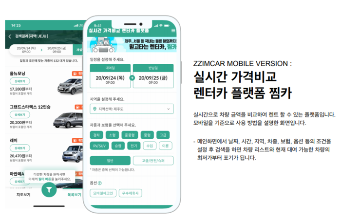 실시간 가격비교 렌터카 플랫폼 ‘찜카’를 서비스 中