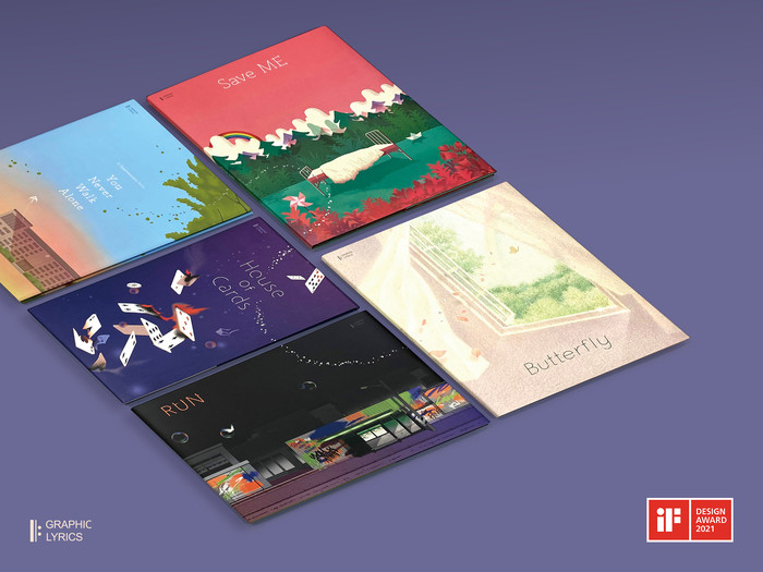 독일 ‘iF 인터내셔널 포럼 디자인(iF International Forum Design GmbH)’이 12일(현지 시각) 발표한 ‘iF 디자인 어워드 2021’ 수상작 명단에 따르면, 방탄소년단의 ‘그래픽 리릭스’ 시리즈와 투모로우바이투게더의 앨범 ‘꿈의 장’ 시리즈는 커뮤니케이션(Communication) 부문에서 본상을 수상했다. ‘iF 디자인 어워드’는 레드닷 디자인 어워드, IDEA(International Design Excellence Award)와 함께 세계 3대 디자인상으로 평가받는다.