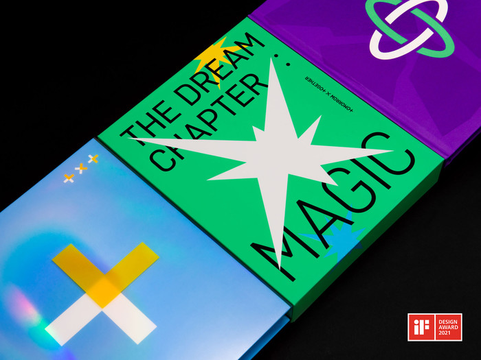 투모로우바이투게더의 앨범 ‘꿈의 장’ 시리즈도 뛰어난 앨범 브랜딩을 인정받아 iF 디자인 어워드 커뮤니케이션 부문 본상을 수상했다. 지난해 레드닷 디자인 어워드에서 방탄소년단의 ‘LOVE YOURSELF’ 앨범 시리즈의 패키지 디자인으로 브랜드&커뮤니케이션 부문 본상을 수상했던 빅히트 뮤직은 이번 iF 디자인 어워드 본상 수상으로 완성도 높은 비주얼 크리에이티브 역량을 또 한번 증명했다.