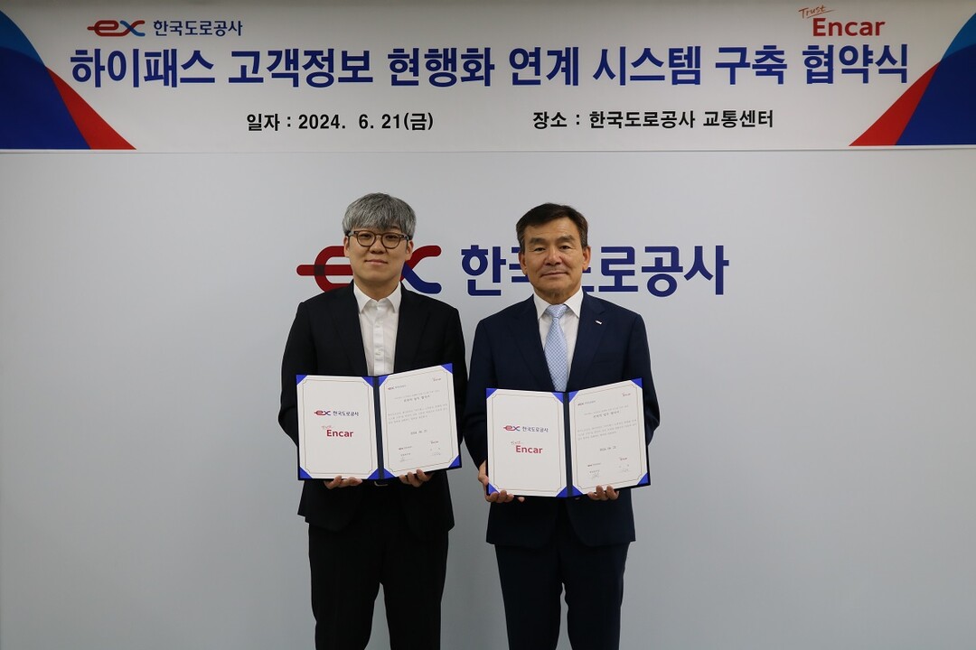 [하비엔뉴스 = 홍세기 기자] 한국도로공사가 지난 21일 도로공사 교통센터에서 엔카닷컴과 중고차 매매 고객의 하이패스 단말기 고객정보 연계 시스템 구축을 위한 업무협약을 체결했다.