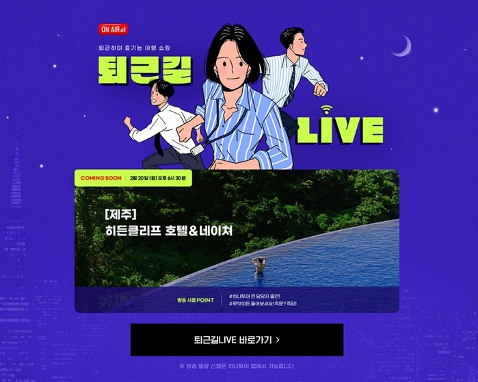| ▲ 하나투어가 2040 직장인을 타깃으로 라이브 커머스 ‘퇴근길 LIVE’를 신규 편성한다. [사진=하나투어] |