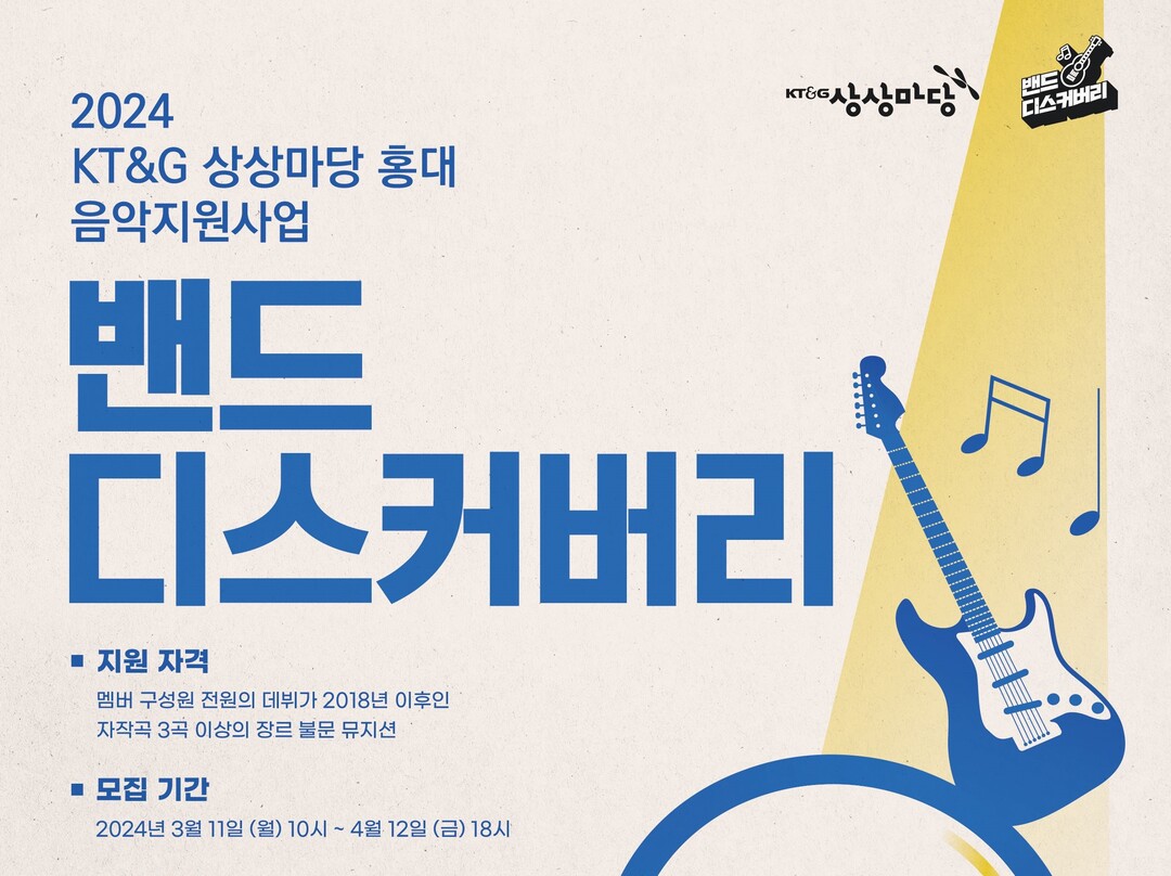 한편 ‘2024 밴드 디스커버리’의 자세한 정보는 오는 11일부터 KT&G 상상마당 홈페이지와 공식 인스타그램에서 확인할 수 있다.