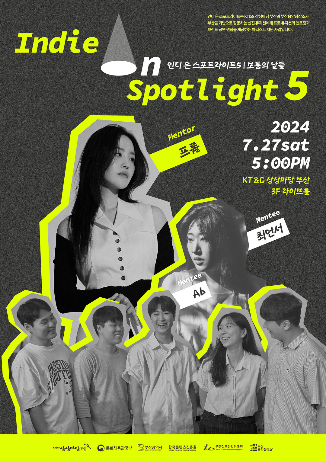 KT&G 상상마당 부산 관계자는 “어느새 다섯 번째 시즌을 맞은 ‘인디 온 스포트라이트’ 사업을 통해 현재까지 총 11팀의 부산 뮤지션을 지원해 왔다”며 “앞으로도 음악에 꿈을 가진 뮤지션들이 부산에서 더욱 활발하게 활동할 수 있도록 사업을 지속할 계획이다”라고 말했다.