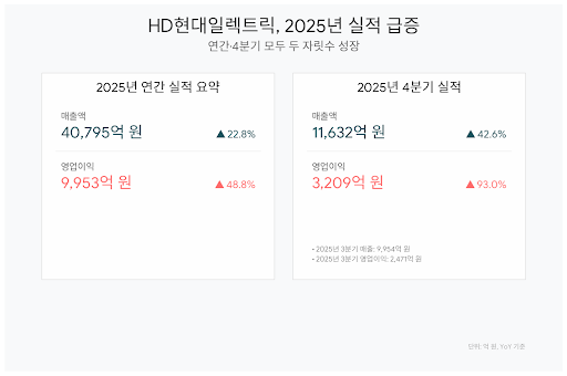 [HBN뉴스 = 박정수 기자] HD현대의 전력기기 및 에너지솔루션 기업인 HD현대일렉트릭이 2025년 연간 경영실적을 발표했다.