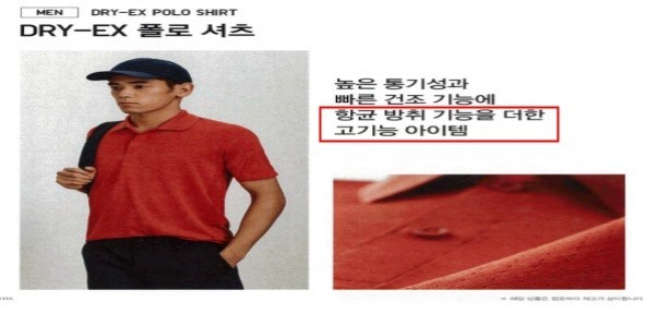 공정위에 따르면, 에프알엘코리아는 2018년 12월24일~2020년 7월16일 사이 각종 SNS, 판촉물, 전단, 홈페이지 등을 통해 ‘항균 방취’ ‘방취 기능으로 상쾌한 착용감’ ‘항균 방취 기능을 더한 고기능 아이템’ 등의 표현으로 유니클로의 에어리즘과 드라이 이엑스 제품에 항균 및 방취 기능이 있다고 광고했다.