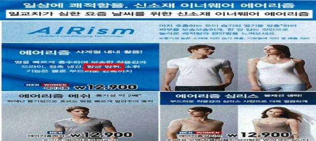 | ▲ 유니콜로의 기능성 의류인 ‘에어리즘(AIRism)’에 대한 SNS 광고. [사진=공정위] |