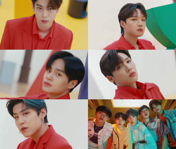 붉은 계열의 수트를 입고 카리스마 넘치는 모습으로 등장하는 AB6IX는 이어 경쾌한 비트에 맞춰 빠르게 회전하는 세트에서 각자의 개성 넘치는 포즈를 취하는가 하면, 컬러감이 돋보이는 세트에서 장난기 가득한 동작과 표정들로 보는 이들의 미소를 자아냈다.