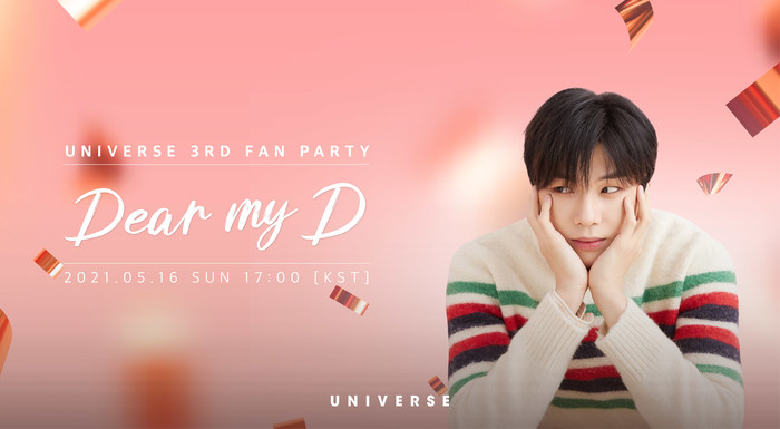 팬파티 ‘Dear My D’ 온라인 라이브 스트리밍은 응모권 5장 이상 사용 시 누구나 시청 가능하며, 본 영상은 추후 ‘유니버스’ 앱에서 VOD로도 제공될 예정이다.