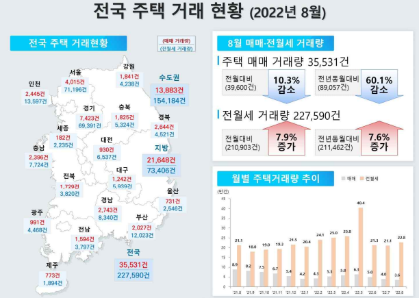 | ▲ 2022년 8월 기준 전국 주택매매거래 현황. [자료=국토부] |